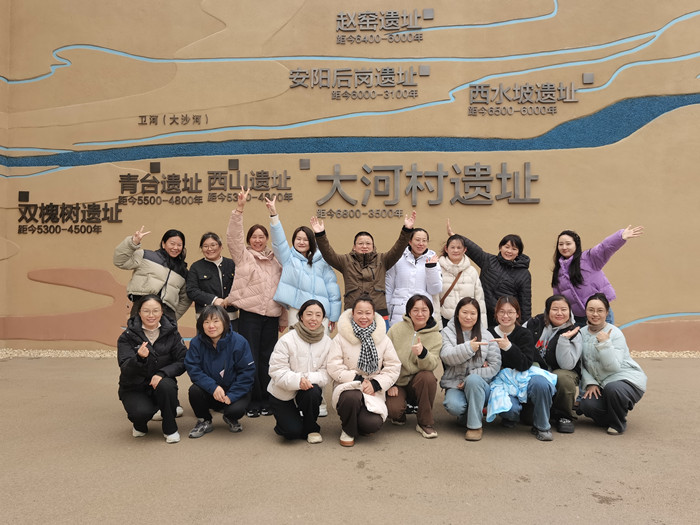 活动伊始,首先来到郑州市大河村遗址博物馆,依次参观遗迹厅、文物陈列厅,近距离观赏彩陶双连壶、天象纹彩陶片等珍贵文物,瞻仰六千年前先民聚落、农耕生活与工艺美学的历史场景,感受中原文明源远流长的深厚底蕴。参观过程中,大家不时驻足凝视、交流,探讨仰韶文化的独特魅力,在沉浸式体验中增强文化自信,汲取历史滋养。